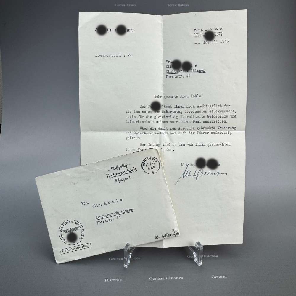 Kanzlei des Führers Briefkopf Adolf H. unterschrift Albert Bormann mit dem seltenen Briefumschlag 1943.